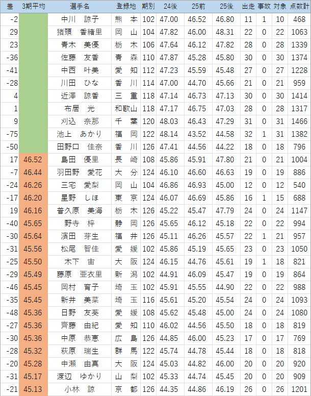 (みなし出走は含んでおりません。欠場点も考慮していません)