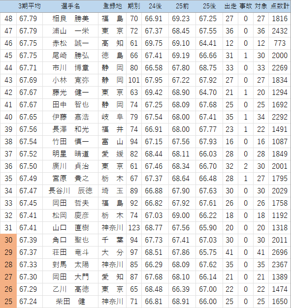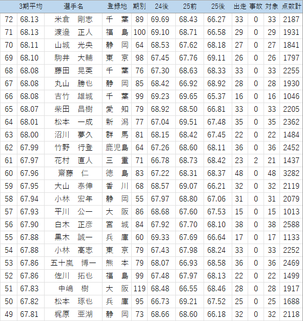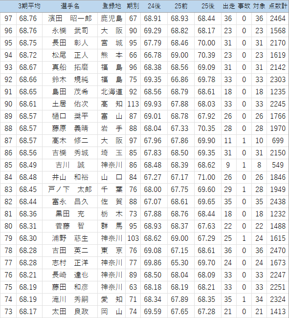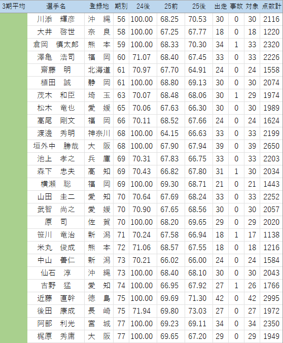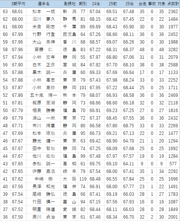 ボーダー、上がってきません…踏み切りが利かず大きな着を受け入れる必要がある分、降下する選手いますし、下からも1回叩くと出直しに…。ボーダー下~67.5台は状態面も精一杯と感じる選手少なくなく…。