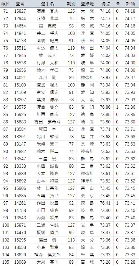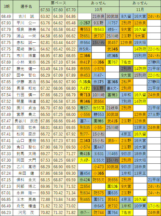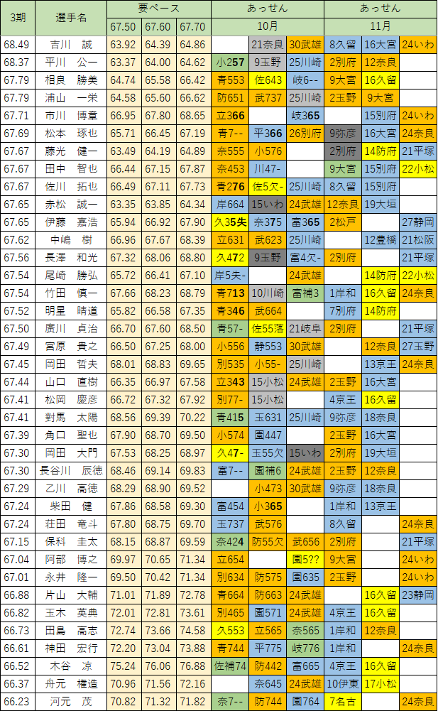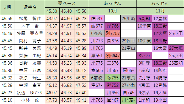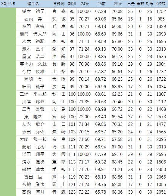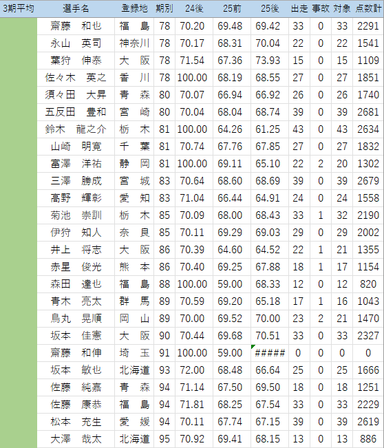 萩原瑞生は今期の33を全部欠場しており、11月は別府に全力投球でしょうか。