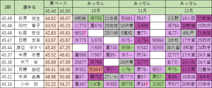 番組展開でどうしても1つ上の着を取ることが…ただ、与えられた番組展開でできる限りの走りはずっとできている印象です。