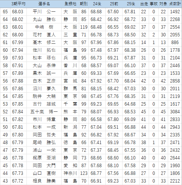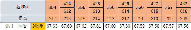 予選6着だと67.59…一般回りは避けたいところ。点数だけでなくデキも…の近況に見え、状態がどうかもありますね。
