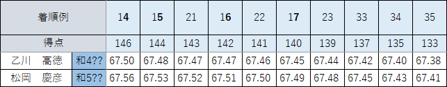 ただ、5着で0.03下がるのが痛いところです(そこから選抜で5着するとさらに0.01下がります)。