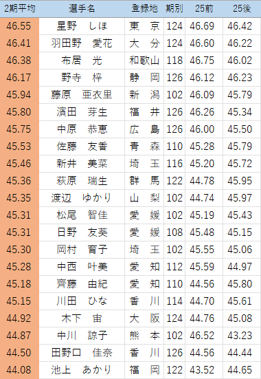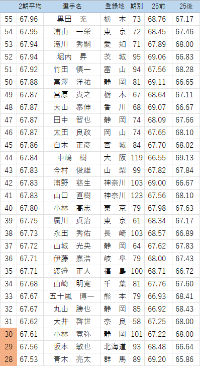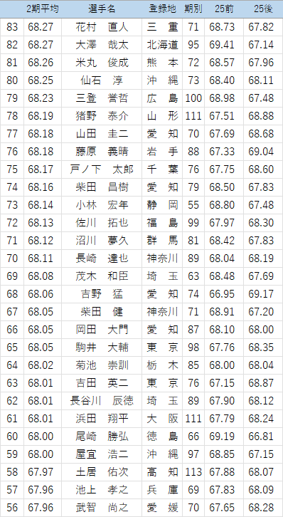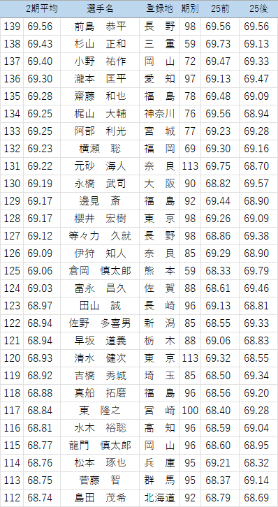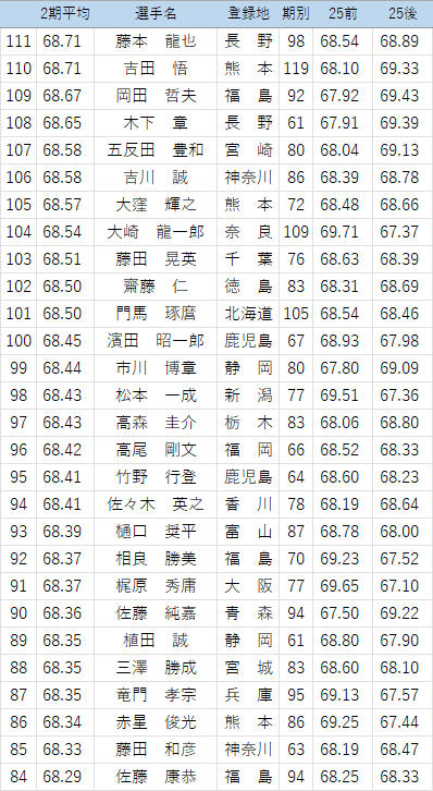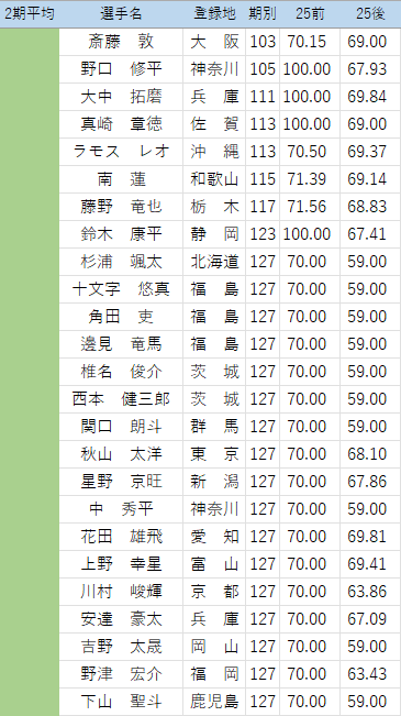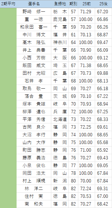 以下の選手について、25年後期の点数を修正しています。