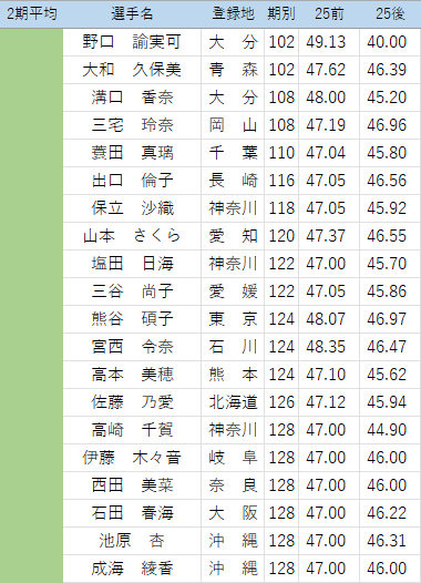 中川諒子(熊本、102期)11走 46.80→43.23