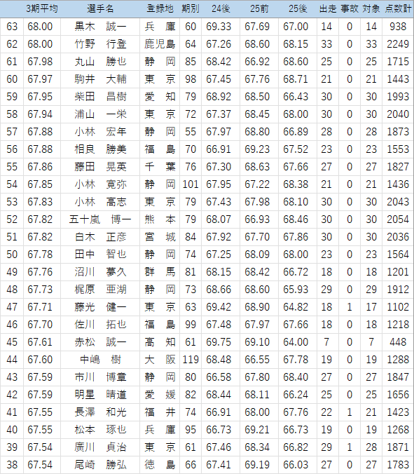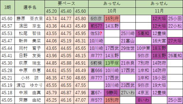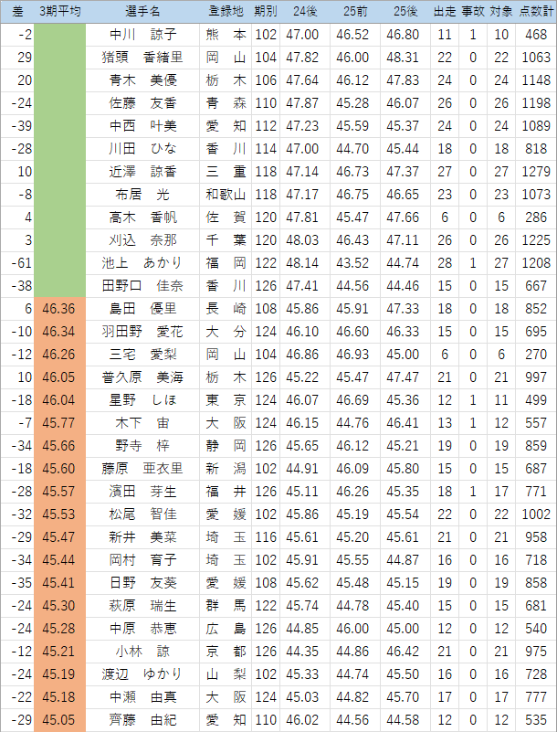 今期は新人のあっせん状況がイレギュラーな状態になっており、ボーダー近辺の選手にとっては今月が勝負とも。勝負駆けならではのレースがチラホラ見られるようになっています。