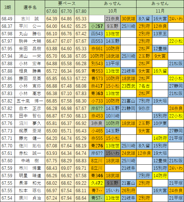 今期は踏み切りが利かなくなり、ここから(例年は0.2~0.3上がる)ボーダーがどうなるか。現時点でボーダー下から大きく上げられる存在、気配・ノルマを見るにほとんどいない気がしますし(2人?)、67.6でも案外強いような気もしますが…うーん。