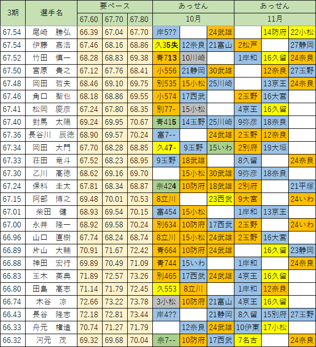 今期はこれまでと違いボーダーが徐々に上がっていくかも…当然ながらノルマの高い選手が苦しくなります。