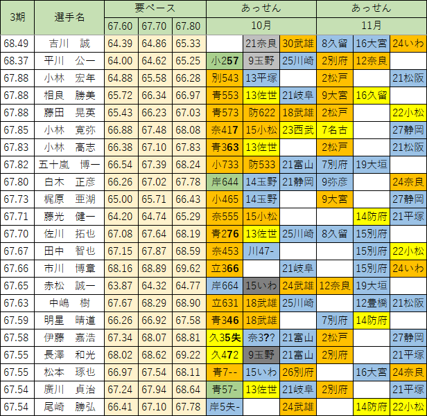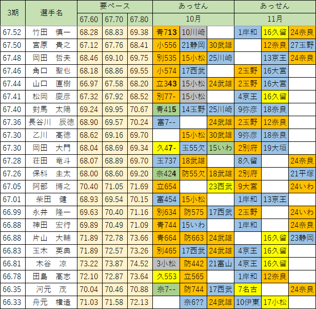 ただ、他に下から上がってくる気配があるのが保科圭太くらいで…保科圭太はここから68点には載せれそうだし今の状況で67.6あれば大丈夫な気が。他に無理にでも挙げるなら、絡まれない中速戦前提ですが長谷隆志…?でも無茶ですよね…。
