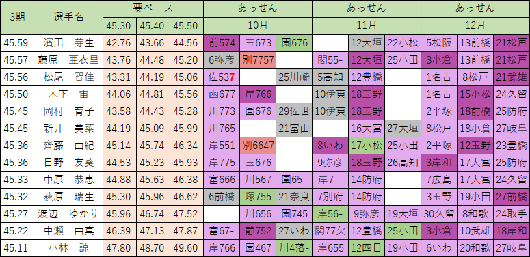 ここは日浦の3番手を回りたいところでしたが高野が主張しました。與古田が前受けならその3番手、日浦が前なら4番手から進めて…どこまで。鋭い伸び今期見られず勝ち上がりは難しいかもですが、例えば4般33でも67.60まで上がるので、前々の走りで取れる着を。