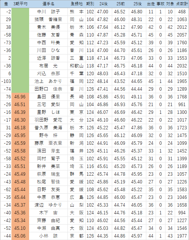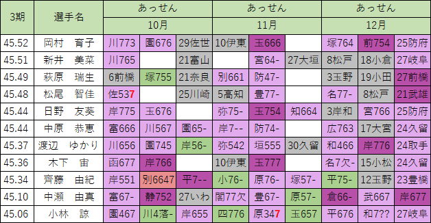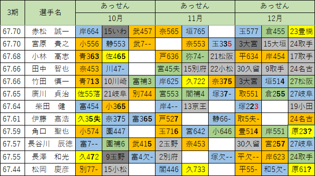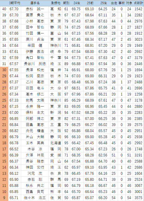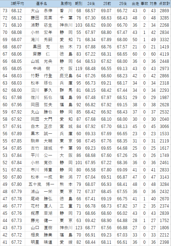あっせん状況は宮原貴之が12/24取手を欠場で67.70、田中智也が12/24名古屋を欠場で67.66…67.68までは当確としたものでしょうか。